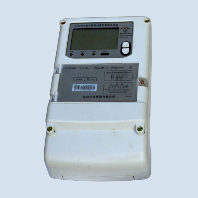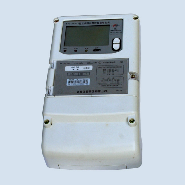 DTZY950\DTZY950- Z\DTZY950-J型三相四線費控智能電能表(以下簡稱電能表)采用大規模集成電路,應用數字采樣技術,根據工業用戶的用電管理需求進行設計、製造具有RS485通信功能的電能表,主要用於參比頻率為50Hz(或60Hz)的三相電網中,對中、小型工商業用戶進行電能計量和電力質量監測。