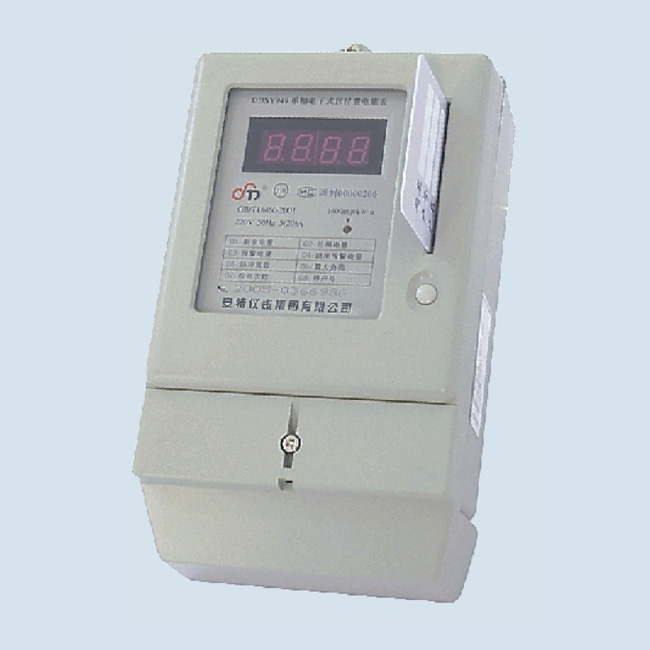 DDSY949型單相電子式預付費電能表,采用專用大規模集成電路以及SMT工藝技術,采用工業級國際知名品牌,長壽命元器件,信息顯示采用5+2位LCD液晶屏或者六位LED數碼管顯示,停電數據不丟失,本產品能準確計量50-60Hz交流電網中的單相有功電量,性能符合國標GBT17215-2002標準( idt IEC61036國際標準)和GBT18460.3-2001